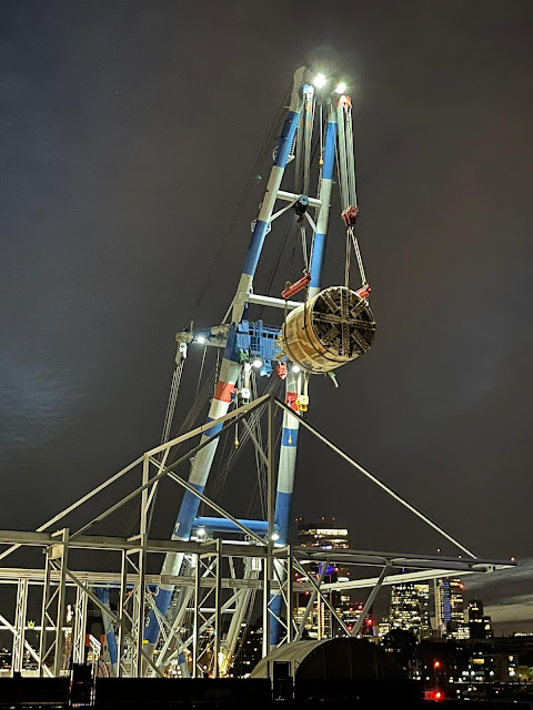 This is the huge crane that has arrived at Chambers Wharf to winch the 1300 tonne Tunnel Boring Machine on a barge for transportation to Rotterdam.